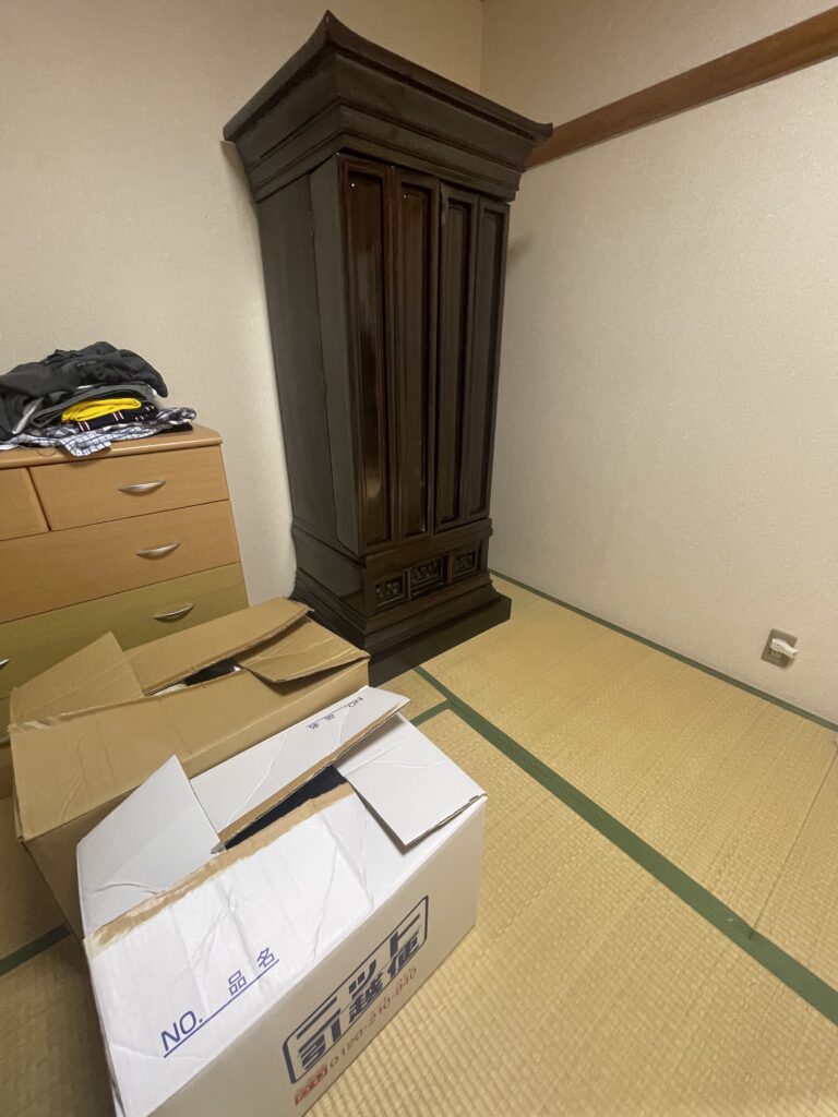 仏壇一つと段ボール箱2つを運搬お願い致しますとのご依頼でした。ありがとうございました