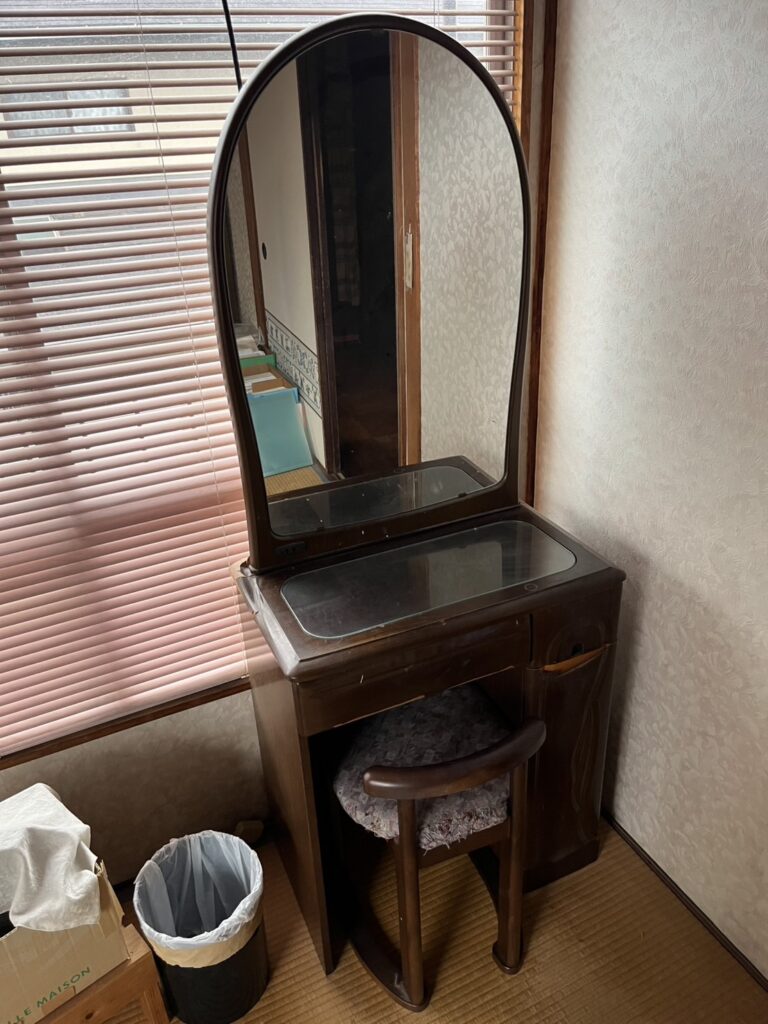 鏡台二つと細いタンス一つを処分お願い致しますとのご依頼でした。ありがとうございました